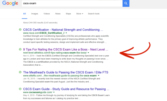 Simply put, that 3200+ word mammoth of a blog post of mine can now officially be considered the #1 resource on preparing for the CSCS exam.
